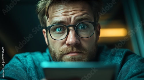 Bearded man sitting in a dimly lit room with glowing red monitors representing focus cybersecurity and advanced data analysis in a high tech environment