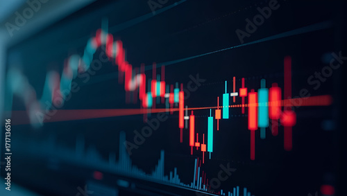 Bearish Trading Insights: Capturing Falling Candlesticks, Red Volume Spikes, and Sentiment Gauges in Live Sessions - Stock Photo Concept with Space for Customization