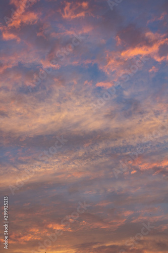 Beautiful and romantic clouds of warm colors during sunset. Sunset as background. Resource for designers.