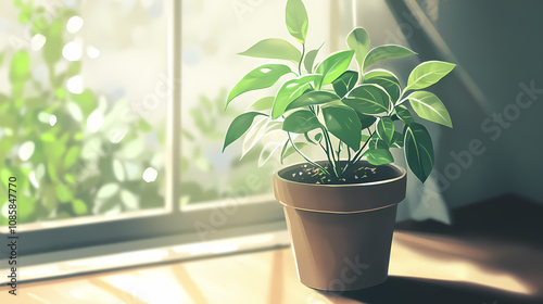 Beautiful Anime Manga Illustration of a Plant in a Pot Close-Up