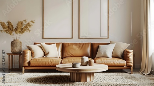 Beautiful Apartment, Sofa, Chair, Dining Table wall Mockup Interior design of modern living room
