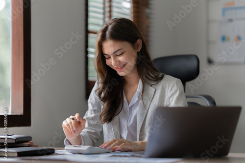 Beautiful asian businesswoman working in office. business finance concept