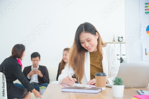 Beautiful asian businesswoman working in office,Female director working in office sitting at desk and analyzing business statistics.