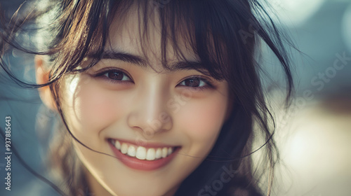 beautiful asian woman smiling illustration.