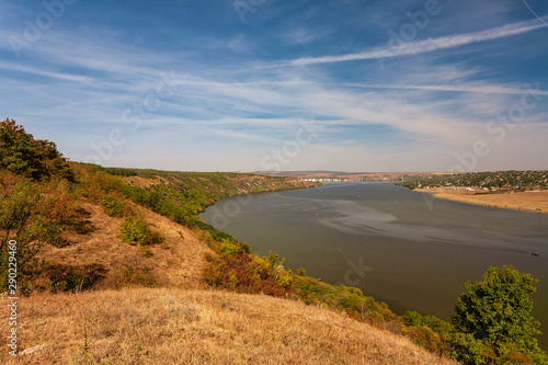 Beautiful autumn landscape with a river in the early morning, The Dniester river in Moldova near the village of Molovata