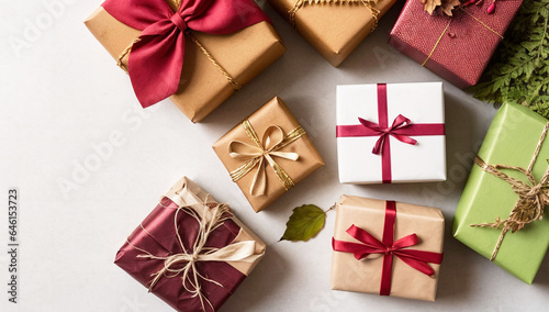 Beautiful autumn leaves and presents