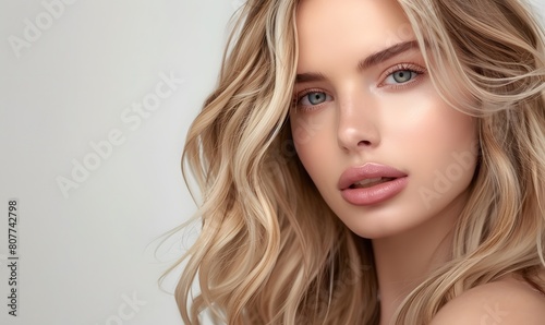 beautiful blonde woman with wavy medium-long hair, Generative AI