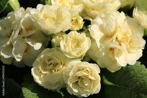Beautiful blooming primrose in sunny March