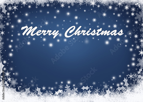 Beautiful Blue Christmas background concept with snow flake and star, Merry Christmas over abstract blue background, festive season card