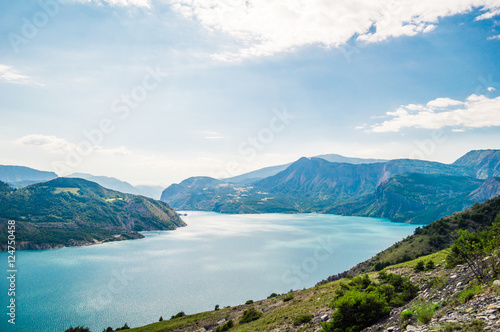 Beautiful blue lake on the Durance river near the Savines le Lac, France