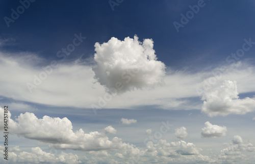 beautiful blue sky and white fluffy cloud horizon outdoor for background.