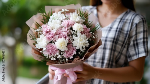 Beautiful bouquet symbolizing appreciation and gratitude held by a person on a sunny outdoor setting