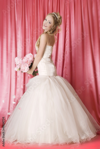beautiful bride on pink background
