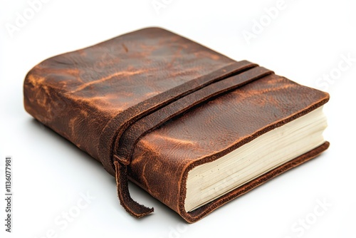 Beautiful brown leather notebook isolated on a clean white background for creative writing