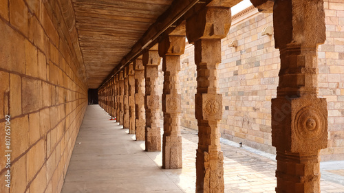 Beautiful Carving Details on the Pillars of Sri Rangnatha Swamy Temple, 100 BCE Living Hindu Temple, Srirangam, Tiruchirappalli, Tamil Nadu, India.