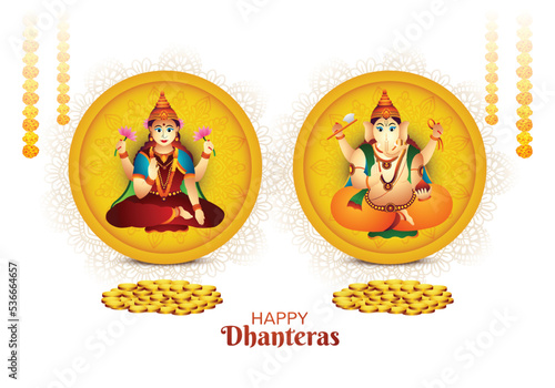 Beautiful celebration happy dhanteras for ganesh laxmi greeting card background