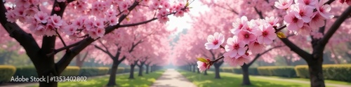 Beautiful cherry blossoms in full bloom at park in April, blossom, full bloom, flowers