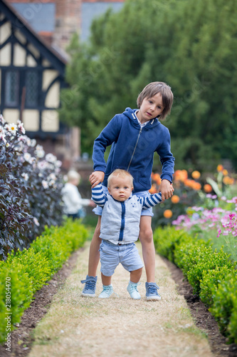 Beautiful child in amazing flower garden