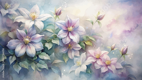 Beautiful clematis watercolor background