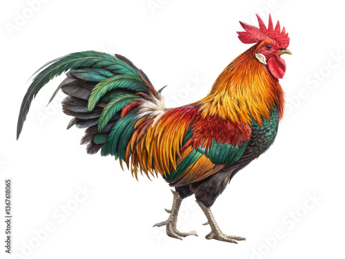 Beautiful colored chicken isolated on a white background.