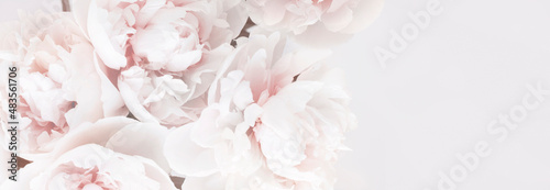 Beautiful delicate pastel floral peony background. Banner.