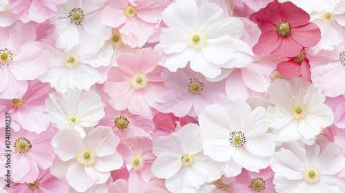 Beautiful floral pattern featuring pink and white cosmos flowers, creating serene and vibrant atmosphere