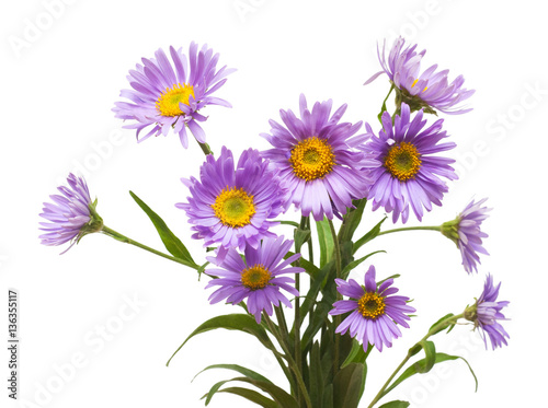 Beautiful flowers of blue daisies isolated on white background.