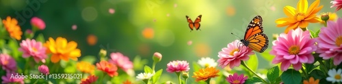 Beautiful garden filled with colorful flowers and fluttering butterflies, creating a vibrant and lively springtime scene, blossoms, garden theme