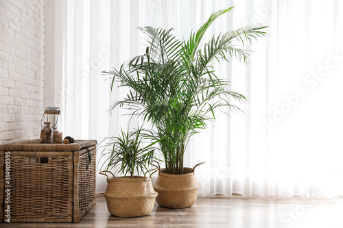 Beautiful green potted plants in stylish room interior