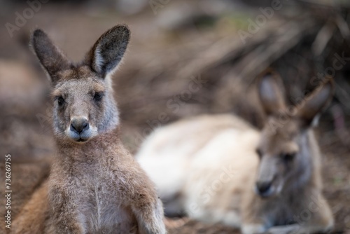 Beautiful kangaroo, pademelon and wallaby in the Australian bush, in the blue mountains, nsw. Australian wildlife in a national park