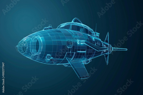 Beautiful large bathyscaphe floating in middle of ocean during exploration