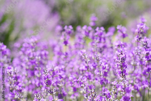 Beautiful lavender flowers growing in field, closeup
