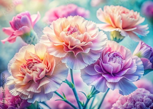 Beautiful Macro Photography of Watercolor Carnations with Soft Pastel Hues and Delicate Petals, Capturing Nature's Elegance in Blooming Floral Art