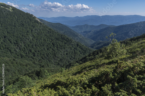 Beautiful mountain view from the entrances on the path to the Kozya Stena hut. The Troyan Balkan is exceptionally picturesque and offers a combination of wonderful mountain scenery, fresh air.
