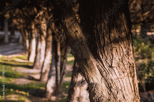 Beautiful nature background. Beautiful forest landscape, bright sunlight makes its way through the trunks of pines, amazing sunset, beauty of wild nature