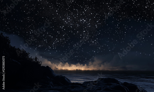 Beautiful Night Sky with Stars Above a Solitary Tree in an Open Field Landscape starry night sky with stars