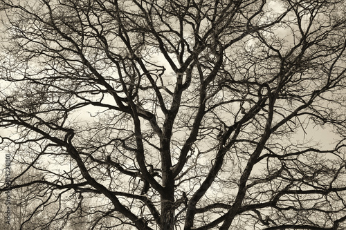 beautiful oak against the sky. Silhouette dry tree