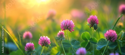Beautiful Pink Clover Flowers Illuminated by Sunlight in a Vibrant Spring Garden