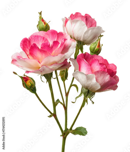 Beautiful pink roses blooming in nature floral freshness isolated on transparent background