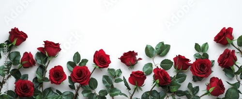 Beautiful Red Roses with Green Leaves on White Background for Elegant Floral Arrangement or Romantic Decoration Ideas