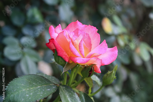 Beautiful Rose flowers of Red, Pink and Orange Color in a garden of spring