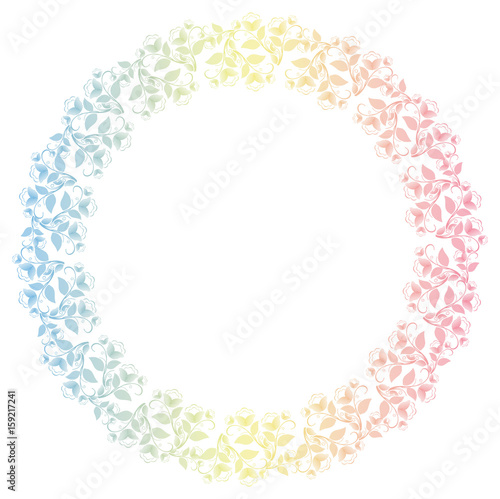 Beautiful round frame with gradient filled. Color elegant flower frame for advertisements, flyer, web, wedding and other invitations or greeting cards. Raster clip art.