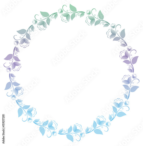 Beautiful round frame with gradient filled. Color elegant flower frame for advertisements, flyer, web, wedding and other invitations or greeting cards. Raster clip art.