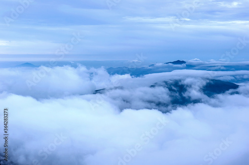 Beautiful sea of clouds at dawn on the top of the mountain.