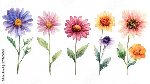 Beautiful Set of Isolated Flowers and Leaves on White Background
