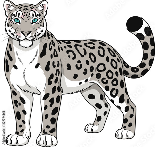 Beautiful Snow Leopard Standing Pose with Detailed Fur Patterns in Elegant Wild Animal Vector