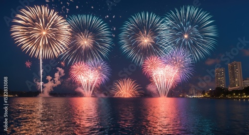 Beautiful Summer Fireworks Display.. With Ample Blank Space For Text