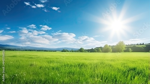 Beautiful summer landscape with green meadow and blue sky with clouds