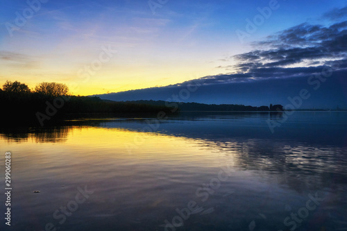 Beautiful sunset in the evening over the lake.