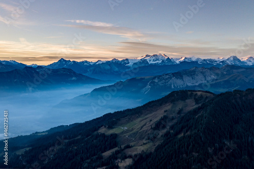 Beautiful swiss mountain landscape with magical light atmosphere. Switzerland.
